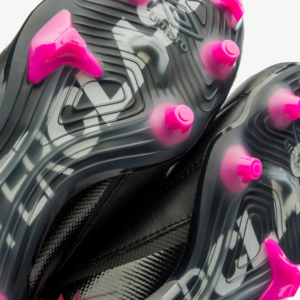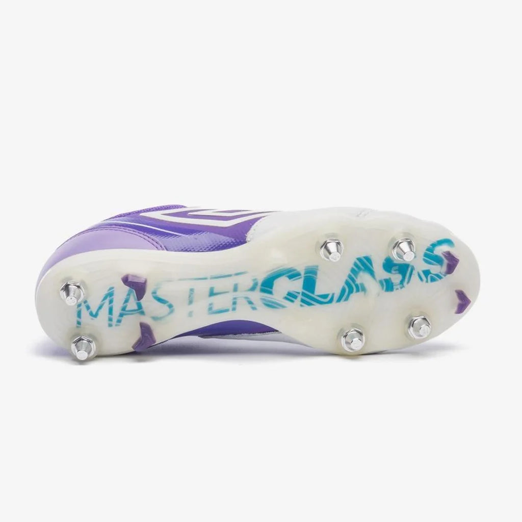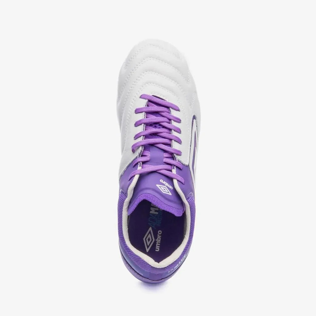 A Chuteira Adamant Master Class Pro da Umbro, modelo profissional indicado para atletas de alto rendimento, une visual clássico com inovações para melhorar seu desempenho. Com knit estruturado ultraleve na lingueta e forro em microfibra, o cabedal traz parte frontal e talão em couro Napa Premier, com costuras de reforço e linhas de flexão em pontos estratégicos. O fechamento combina meia de knit compressiva e cadarço para ajuste seguro. Possui solado FG de 11 travas mistas em Pebax na base, com palmilha de montagem injetada também em Pebax, que oferece retorno de energia e reforço.